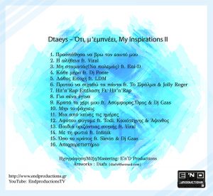 Μετά από αρκετό καιρό ο Dtaeys επιστρέφει , ο δεύτερος προσωπικός δίσκος του είναι γεγονός! Το cd ονομάζεται ''Ότι μ ’εμπνέει ΙΙ'' και αποτελεί την συνέχεια του πρώτου δίσκου οπού είναι μια συνέχεια από ήδη υπάρχοντα κομμάτια τα οποία τον ενέπνευσαν να τα ΄΄αλλάξει΄΄ σε ΄΄Ότι, τον εμπνέει΄΄ . Στον δίσκο συμμετέχουν οι Άψινθος, Eni-D, Κακοτέχνης, Jlolly Roger, Ασυμφορος Ορος, Το Σφαλμα, Viral, Infinik, LDM, Slevin, Dj Gzas Dj Ponte. Όλες οι ηχογραφήσεις, μίξεις και το master έγιναν από την E'n'D Productions, ενώ τα εξώφυλλα επιμελήθηκε ο Diafx.